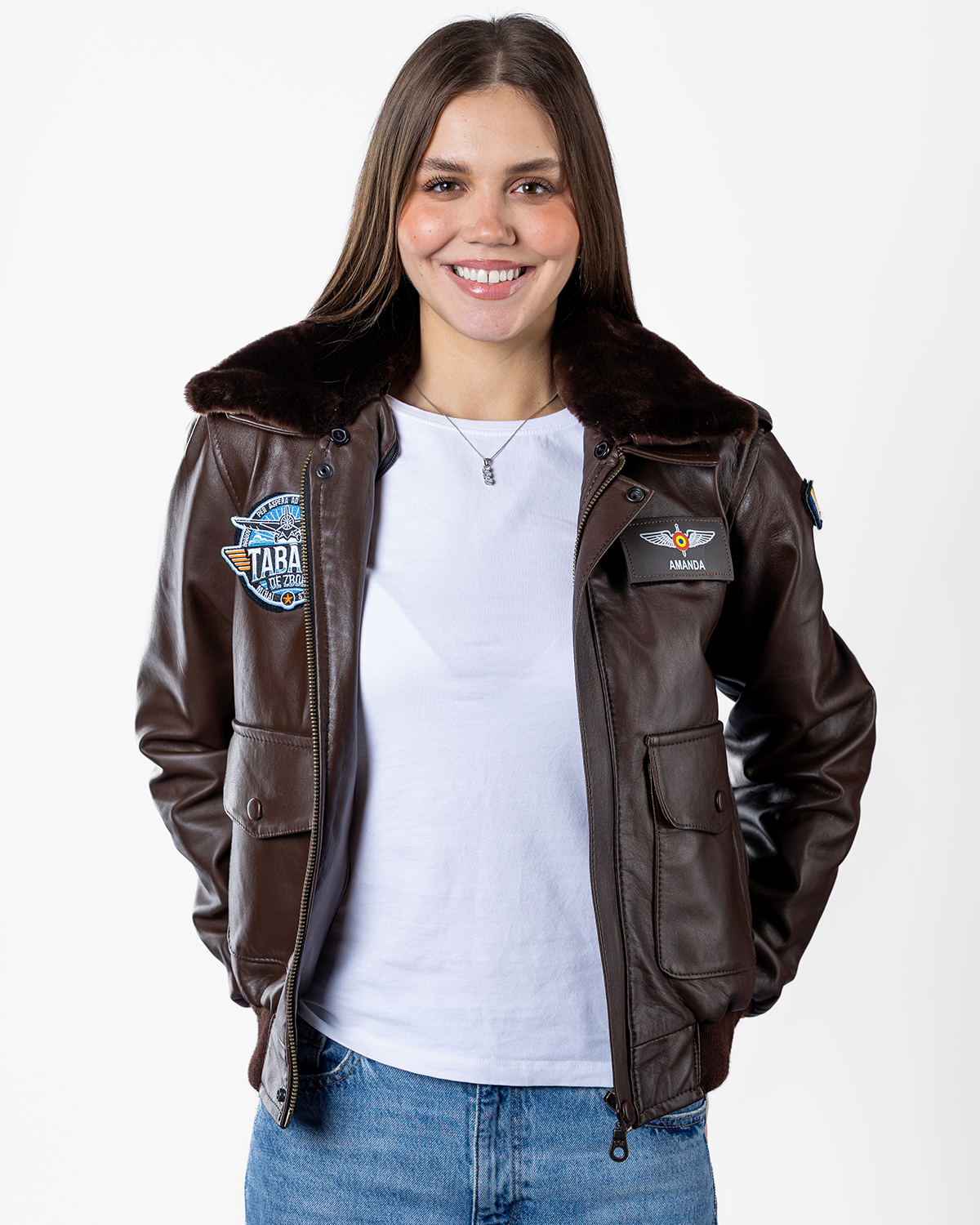 Geacă de damă din materiale rezistente și ușoare, cu croială modernă și talie conturată. Disponibilă în varianta simplă sau personalizată cu patchuri aviatice, nume, indicativ, drapel sau simboluri tematice TDZ. Potrivită pentru toate anotimpurile.