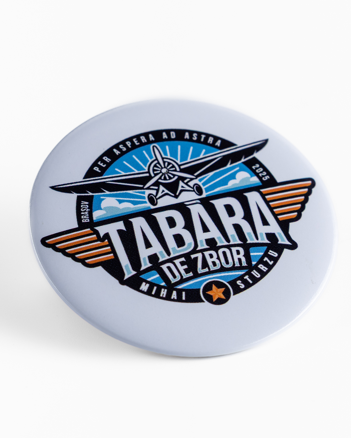 Insigne metalice premium, reprezentând aripi de pilot, avion sau simboluri TDZ. Se atașează ușor pe geacă, rucsac sau pălărie.